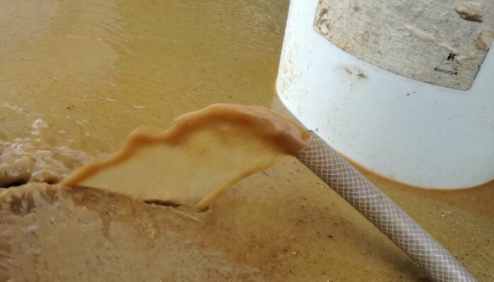 Снизился напор, и вода из скважины стала мутной. В ней появились песчинки и частички ила, оседающие при отстаивании. Диагностика показала, что произошло заиливание скважины, что не только негативно сказывается на качестве воды, но и опасно для насоса. Было принято решение провести чистку скважины от песка и ила методом промывки. Под большим давлением в заиленную скважину стала подаваться вода, которая выбрасывалась на поверхность вместе с размываемыми ей частицами песка, ила и грязи. Процедура проводилась до тех пор, пока вместо грязи из скважины не начала выбрасываться чистая вода. После промывки скважины напор был восстановлен, а вода избавилась от частичек ила и песка.